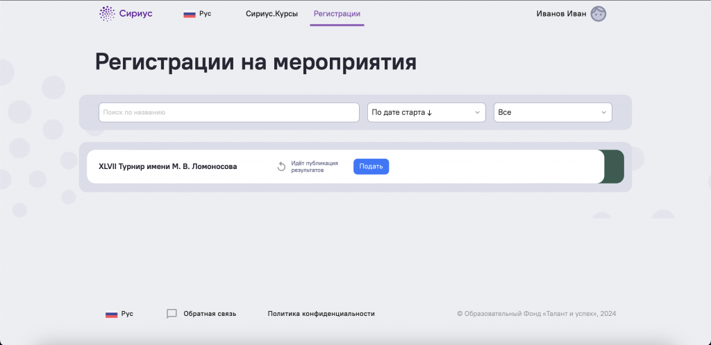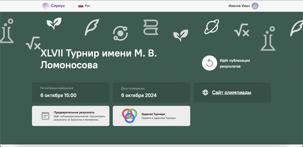 Чтобы увидеть результаты XLVII Турнира имени М. В. Ломоносова, пройдите на страницу платформы Сириус. Введите почту, с которой Вы проходили турнир, и войдите по одноразовому коду или паролю.